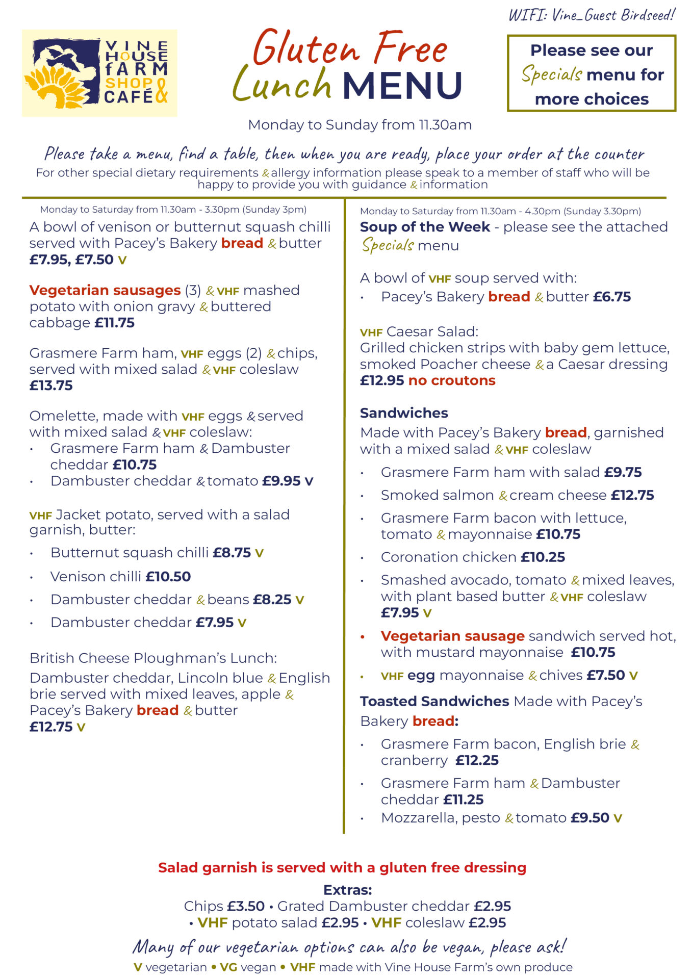 We have vegetarian & vegan options where possible. For gluten free options, please see menus below. For any other special dietary requirements & allergy information, please speak to a member of staff who will be happy to provide you with guidance & information.